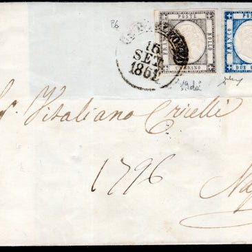 Antikke Italienske Stater - Napoli 1861 - 2gr. blå, brugt på brev og afstempl...