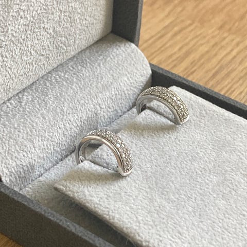 Elegant hoops i 18 karat hvidguld med en vægt på 7,0 gram, helt håndlavede i traditionelt håndværk og bestående af naturlige rubiner med en vægt på 3,20 karat og en intens rød farve, omgivet af naturlige diamanter med brillantklip, der vejer 1,50 karat og tilføjer glans.