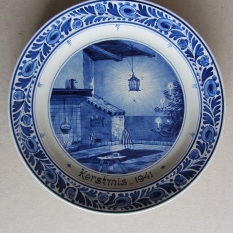 Scherbenfarbe hvid, blå kobalglasur med guldapplikationer