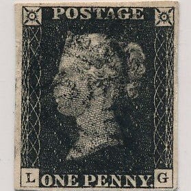 Fantastisk dobbeltstykke af verdens første frimærke. Meget dekorativ med rød Malteserstempel og fuldrandet på alle sider.