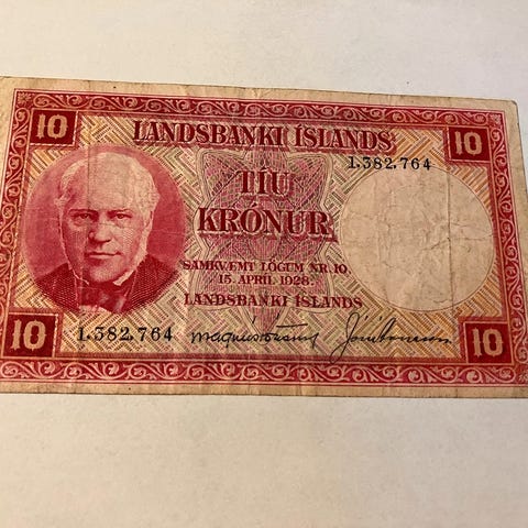 Island, 1930, 10 Kroner sølvmønt (.925), vægt 35 g, diameter 45 mm, tykkelse 2,5 mm; ikke certificeret. Klik på den blå "gå til varen" knap, for at købe eller byde på denne vare. Den samlede pris vil blive vist inden du afgiver dit bud.