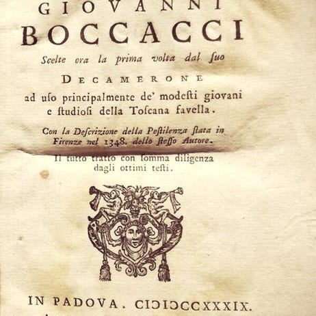 [Leipzig]: [Insel-Verlag], uden dato [1912]. [6], 415 sider. 31,5 cm x 20,5 cm. Fuldt læderbind designet af Emil Rudolf Weiß, med guldbogstaver og dekoreret forside og ryg med seks hævede bånd, guldbeklædt bagside, røde kanter og trykte indersider. Begrænset og nummereret udgave for at fejre Boccaccios 600-års fødselsdag. Dette er nr. 79 af i alt 825 eksemplarer. Smukt illustreret med træsnit og initialer fra den venetianske udgave fra 1492.