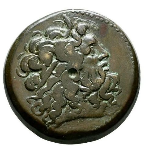 Diademklædt hoved af Ptolemy I til højre, iført aegis.