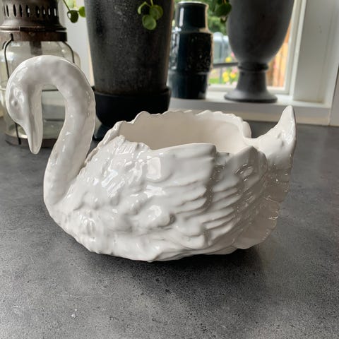 Porcelæn, svaner, portugal, 1 porcelænssvane der f.eks. kan bruges til blomster eller generelt som pynt. Ligner der står Portugal i bunden men er ikke sikker. Fin stand.
