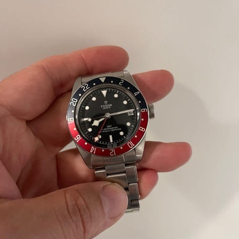 Bagside: Med glas. Med indgraveringer. Med logo. Fastgjort med 6 skruer. Sort PVD titanium.