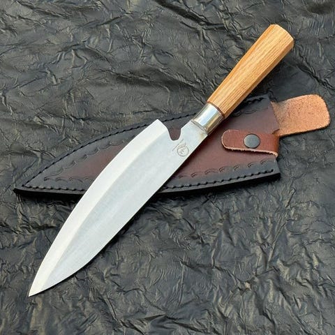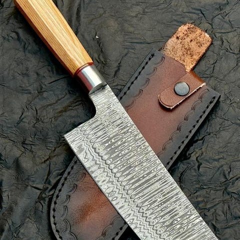 Køkkenkniv - Håndlavet kokkekniv med lædercover - Asien