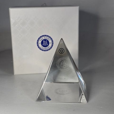 En af de smukkeste og sjældneste kreationer fra Cristallerie du Val Saint Lambert ved højden af deres før-krigs ekspertise: et monumentalt middagscenter, fuldstændigt sammensat af fire aftagelige elementer, håndskåret i et krystal med en usædvanlig renhed og tykkelse.