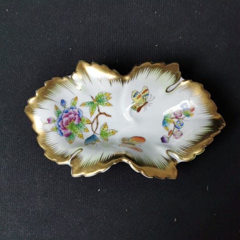 En Herend Queen Victoria VBO (Victoria med guldbord) bord. Mønstret er en moderne version af det originale Victoria-design, der i 1851 vandt 'Guldprisen' og blev bestilt af dronning Victoria af England.