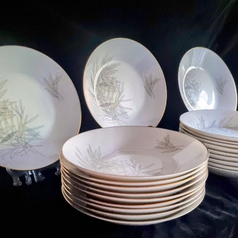 Sættet er udsmykket med håndpåførte 24 karat guldkanter, der tilfører varme, glans og en tidløs æstetik til servicen.