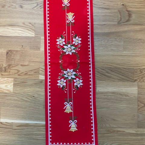 Fin broderet juleløber - svampe og hjerter mm k kanten