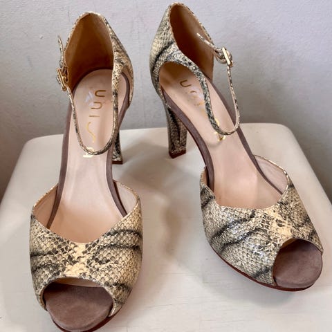 Superelegante sandaler i helt igennem i skind med ankelrem - ikke brugt specielt meget, skindsåler ser hurtigt slidte ud