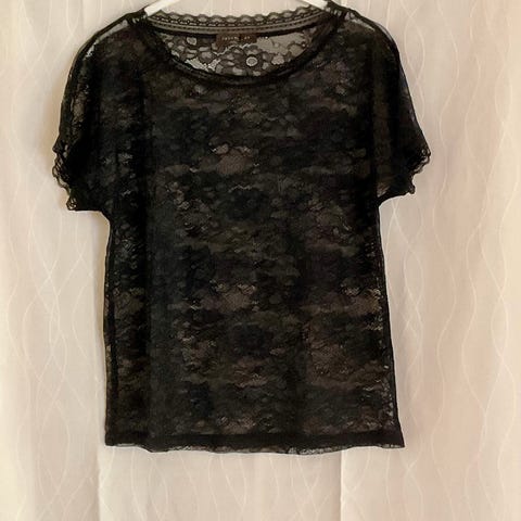Størrelse: small - S er 90cm lang med blondekanten. Går ned over numsen.