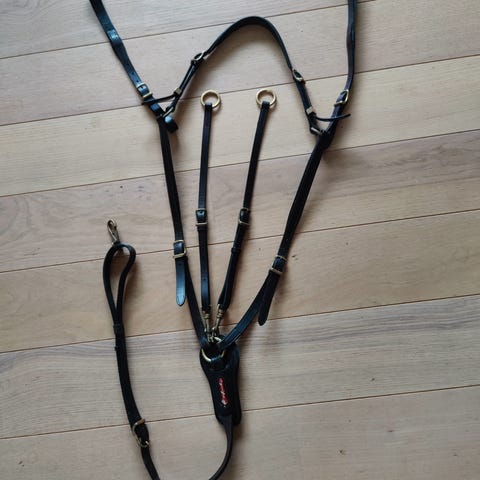 Str. 130 cm super lækker Equipe gjord med elastik i begge ender. Blødt kalveskind indvendig og kraftigt okseskind udvendig. Brugt meget lidt og det kan ses, da den er som ny.