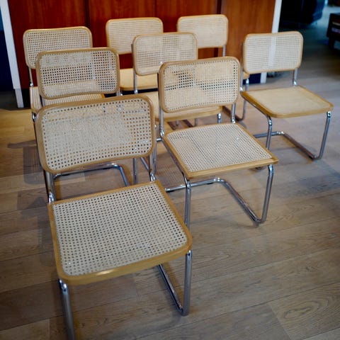 MARCEL BREUER, efter, "Cesca B32", stole, 8 stk, Italien, forkromet stel, sæder og ryg i bøg og flet stemplet “Made In Italy”. Sæde og ryg på alle 8 stole er helt intakt.