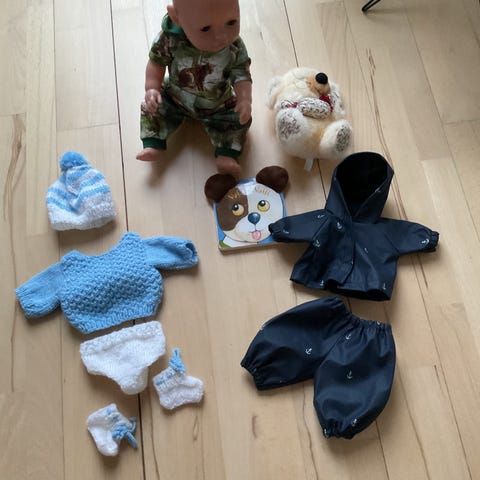 Rigtig fin stor drenge dukke med en hel pose tøj til.