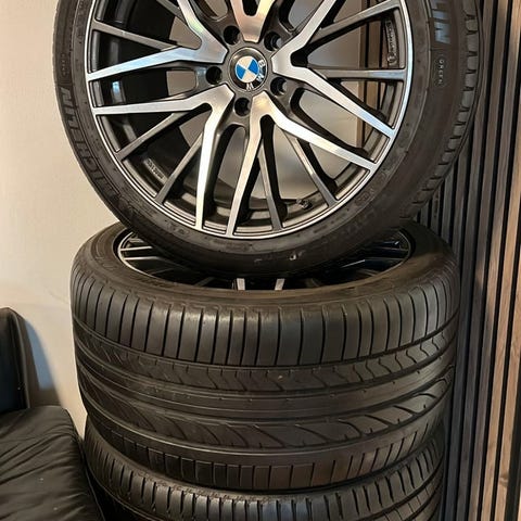 Tyske kvalitets Brock Fælge med Michelin Pilot Sport 4 dæk bag 315/35 for 275/40 - nypris dkk 26000 - fælgene er som nye uden ridser og dækkene har 5-6 mm tilbage - originale BMW logo passer i diameteren - passer på X5 årg 2018-2025 Model G05 - sælges samlet til halv pris dkk 13000