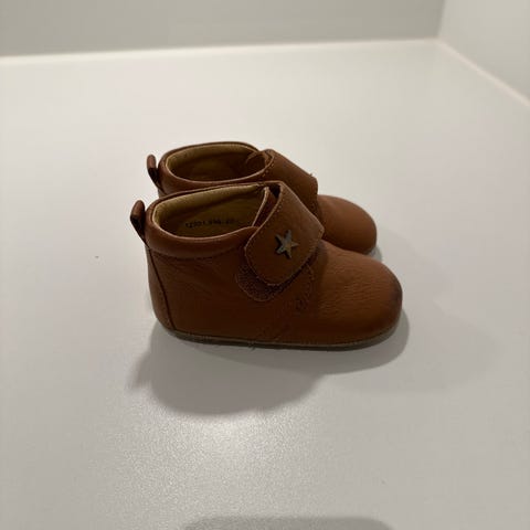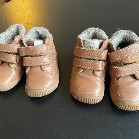Bisgaard børnesko til unisex i størrelse 20. Skoene er brune og har en varm foring, der sikrer komfort og varme. De har to velcrolukninger for nem justering og god pasform. Sålens mønster giver godt greb og stabilitet.