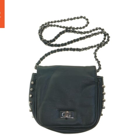 Dette er en sort skuldertaske med et quiltet design og en kæderem. Tasken har en flaplukning og en polstret sektion på remmen for komfort. Tasken måler cirka 26x20 cm.