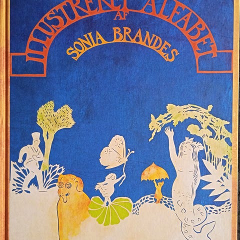 Billedbog. Alfabetet præsenteres med et bogstav i forskellige skrifttyper, et tilhørende rim og tegninger af ting, der begynder med det bogstav