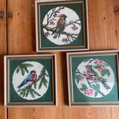 Broderet fuglemotiv tekstil (str. 82x15 cm)