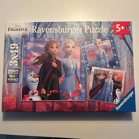 Frozen puslespil med 3x49 brikker fra Ravensburger (str. 3x49 brikker 21x21 cm)