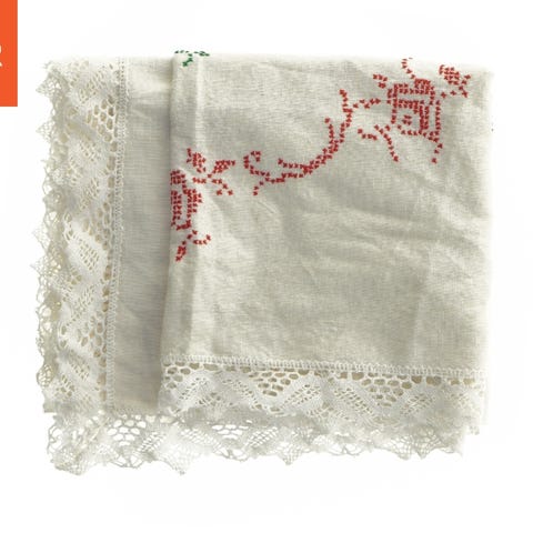 Borddug med blomsterbroderi (str. 85x85 cm)