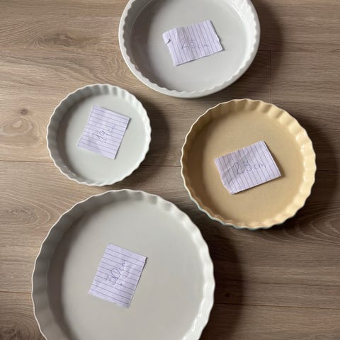 Dette tærtefad har en diameter på 25 cm. Det er lavet af porcelæn og har en dekoration af blå blomster og blade med gule detaljer. tærtefadet har en bølget kant, som tilføjer et dekorativt element til designet. Bagsiden af fadet viser tegn på brug med små mærker og skrammer.