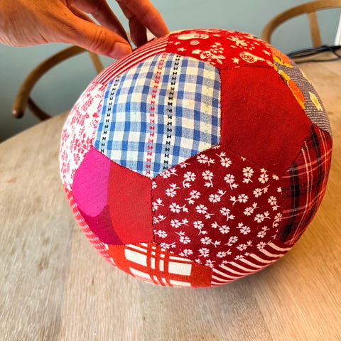 Håndsyet bold med en diameter 12 cm.