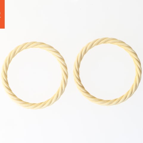 To servietringe lavet af flettet materiale, der skaber et dekorativt look til bordopdækningen. De har en diameter på 8 cm og er beregnet til at holde servietter stylish og organiseret. Tags: servietringe, borddækning, dekoration.