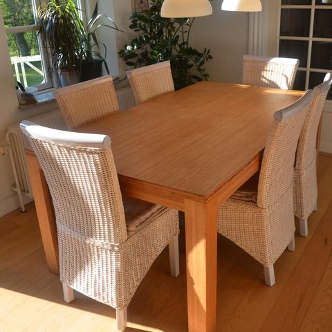 Spisebord med udtræksplader natur eg og bambus stole