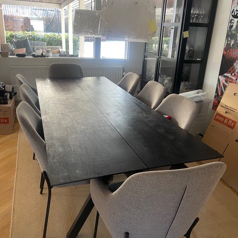 Spisebord med 2 udtræksplader: https://jysk.dk/spisestue/spiseborde/spisebord-aalborg-95x180-270-natur-eg