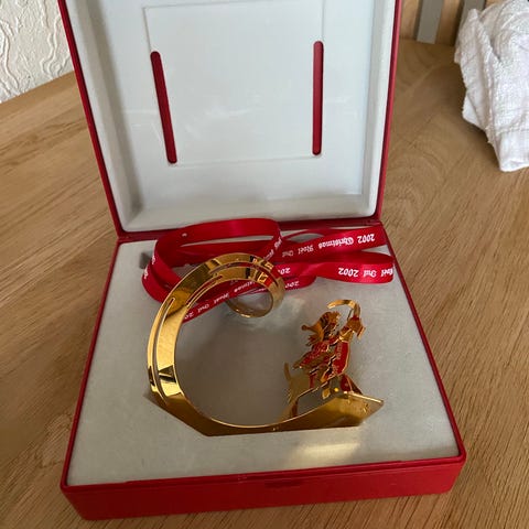 Den græmme ælling i sølv med sort bånd. Mener mærket er Nordahl