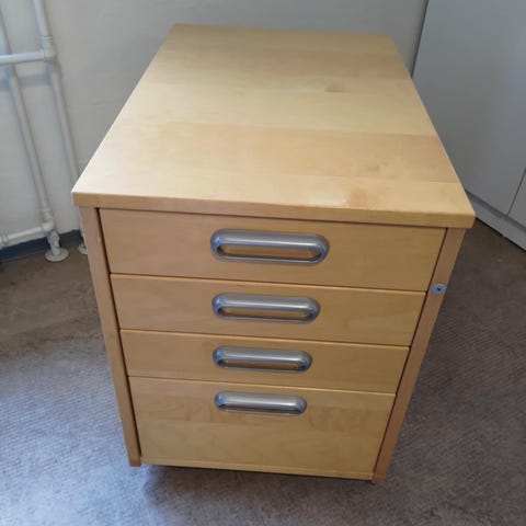 To praktiske, sorte skuffemøbler sælges samlet eller hver for sig. Prisen er pr. styk. Få ridser på toppen af dem begge, men fronterne er fine.