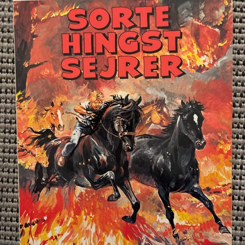Den Sorte Hingst Vender Tilbage er en bog med illustrationer, der viser en sort hingst og en rytter i ørkenlandskab. Bogen indeholder en fortælling om hestens og rytterens oplevelser.