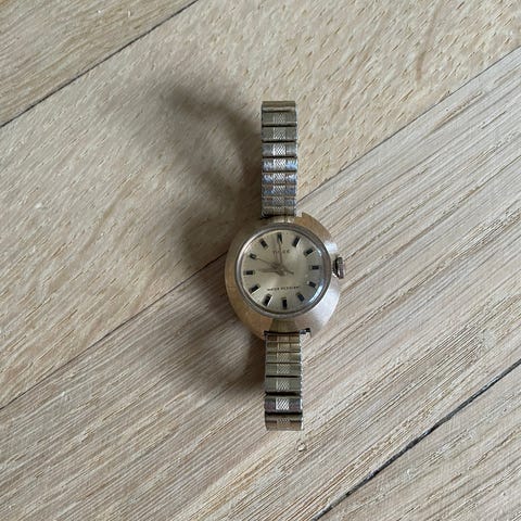 Dameur, Timex, sjælden, vintage timex dameur, gulddouble med forhøjet/buet glas, diameter 28mm. jeg får sat nyt batteri i før afsendelse.