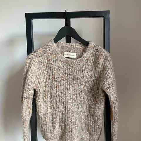 By Malene Birger strik i lyserød farve, størrelse L, lavet af uldmateriale.