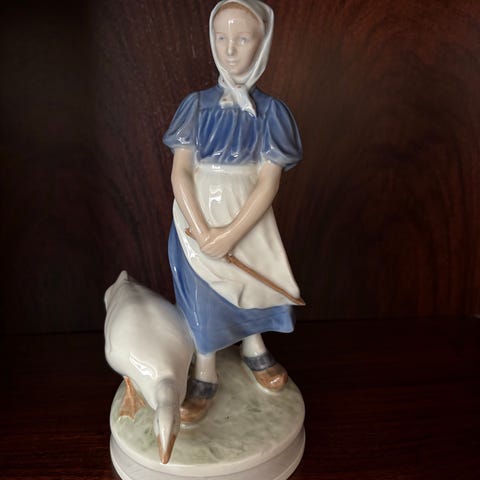 To rigtigt flotte porcelæns figurer fra Royal Copenhagen. Stor Gåsepige nr 527 . 1 sortering. 24 cm høj. Pris 300 kr. Gåsepige nr 528 . 1 sortering . 19 cm høj . Pris 225 kr . SE OGSÅ MINE ANDRE ANNONCER MED KONGELIGE PORCELÆNS FIGURER