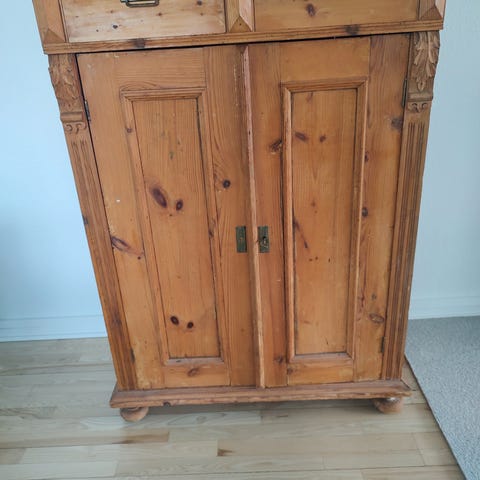 Fint gammelt afsyret træskab, som vi har brugt i køkkenet.