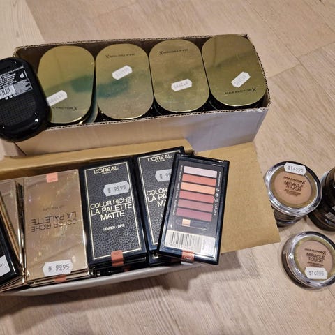 Bemærk at læbestifterne ikke følger med. De er udelukkende lagt i kasserne for at beskytte dem.