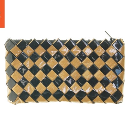 Denne sorte clutch taske måler 21x13 cm. Den er designet med en struktureret overflade og har en praktisk håndrem på siden for nem bæring. Tasken er kompakt og ideel til opbevaring af små genstande som penge, kort og telefon.