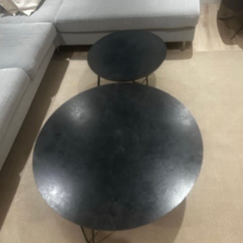De er forskellige størrelse og kan stå inde under det store af bordene.