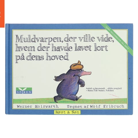 Billedbog om en lille muldvarp, som får en masse forskellige dyr til at demonstrere deres afføring for at kunne gøre gengæld mod den skiderik, der har lavet lort på dens hoved
