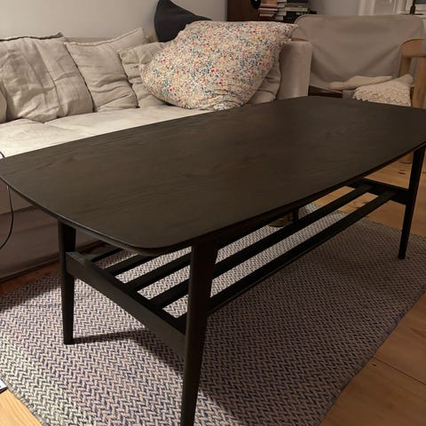 Woodstock sofabord i olieret eg med hylde. Bordpladen er egefinér.