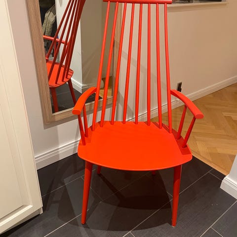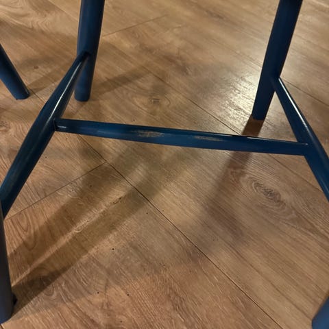 Oprindeligt har stolene været lakeret, men jeg har selv slebet dem med og behandlet dem med hvid natursæbe.
