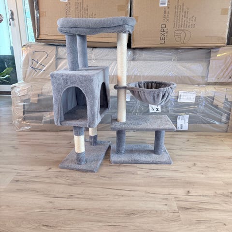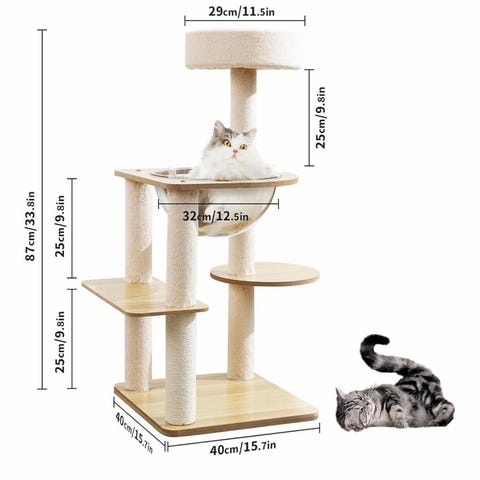 Kattekradsetræ med hængekøje og hule i naturmaterialer
