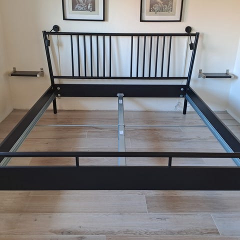 Sengestel med puder uden madrasser og lamelbund (lamelbund koster 400kr).