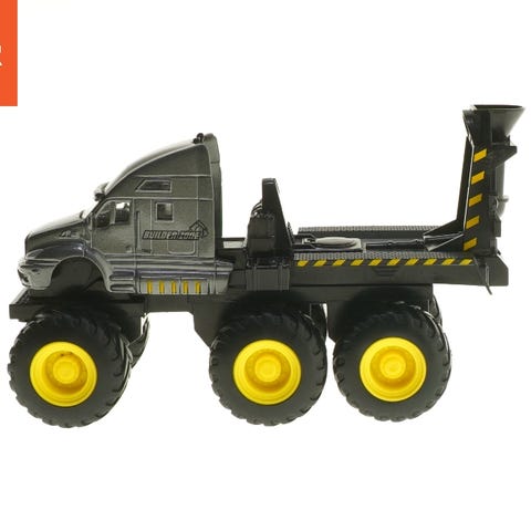 Dette er en legetøjslastbil med en integreret gravemaskine arm. Den er primært i farven gul med sorte detaljer og har otte hjul. Lastbilen har en realistisk konstruktion, der gør den populær blandt børn, der nyder at lege med bygge- og entreprenørmaskiner. Lastbilen kan bruges indendørs såvel som udendørs som en del af fantasifulde lege. Den måler 35x33 cm. Tags: lastbil, gravemaskine, legetøj, bygge
