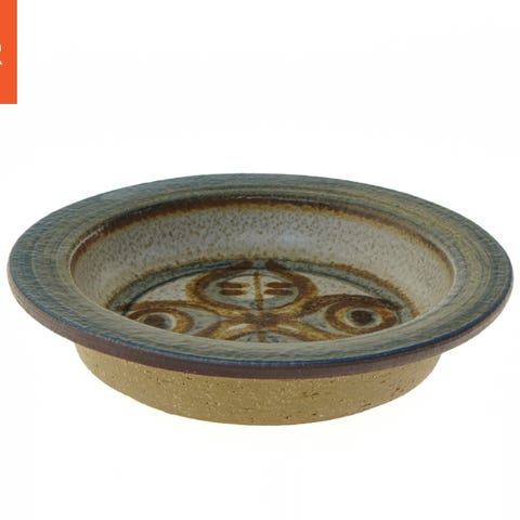 Keramisk rund brunt fad fra Søholm Stentøj (str. Ø 19 cm)
