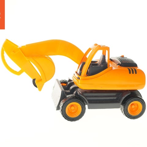 Dette er en legetøjsgravemaskine fra mærket JCB. Gravemaskinen er lavet af plast og har fire store hjul for nem bevægelse. Den er gul med sorte og gule detaljer, inklusive en bevægelig skovl foran. Legetøjet er velegnet til børn, der elsker byggeplads tema og maskiner.