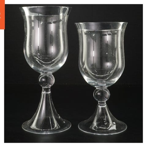 Tags: lysestager, glas, rillede, brun, dekoration.